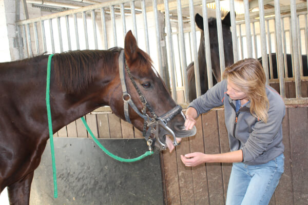 Das Pferd zerreibt sein pflanzliches Futter wie ein Mühlstein. Dazu sind die Zähne mit unterschiedlichen Härtegraden aufgebaut, so dass immer eine raue Oberfläche besteht, die das Futter gut zerreibt. Im Laufe eines Pferdelebens werden also die bleibenden Zähne über die Jahre zerrieben und somit „verbraucht“. Das bedeutet aber auch, dass oberflächlich abgebrochene Zähne durch den Nachschub aus dem Unterkiefer wieder regenerieren können.
